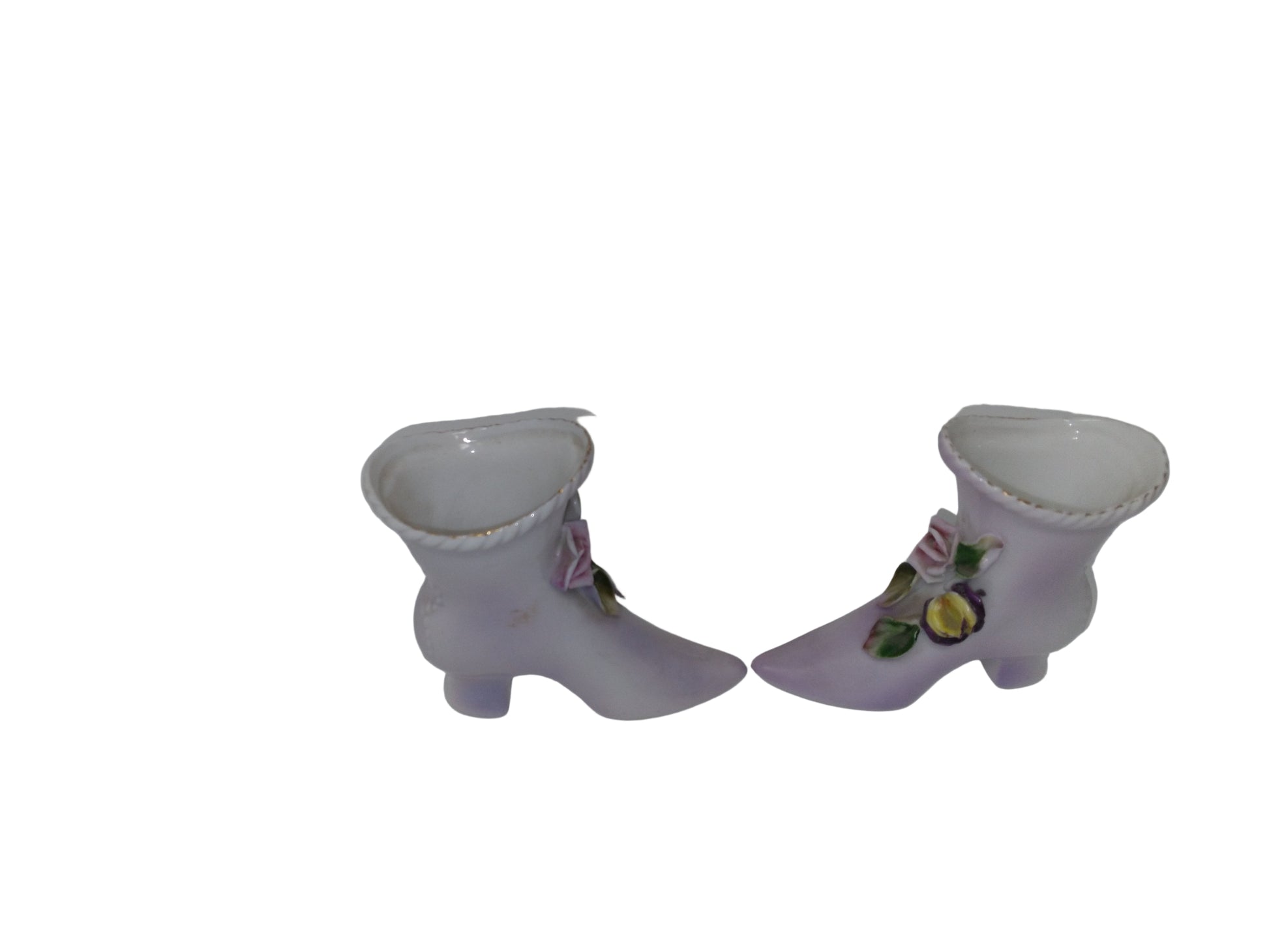 2 Vintage Miniature Ceramic Porcelain High Heel Roses flower shoes