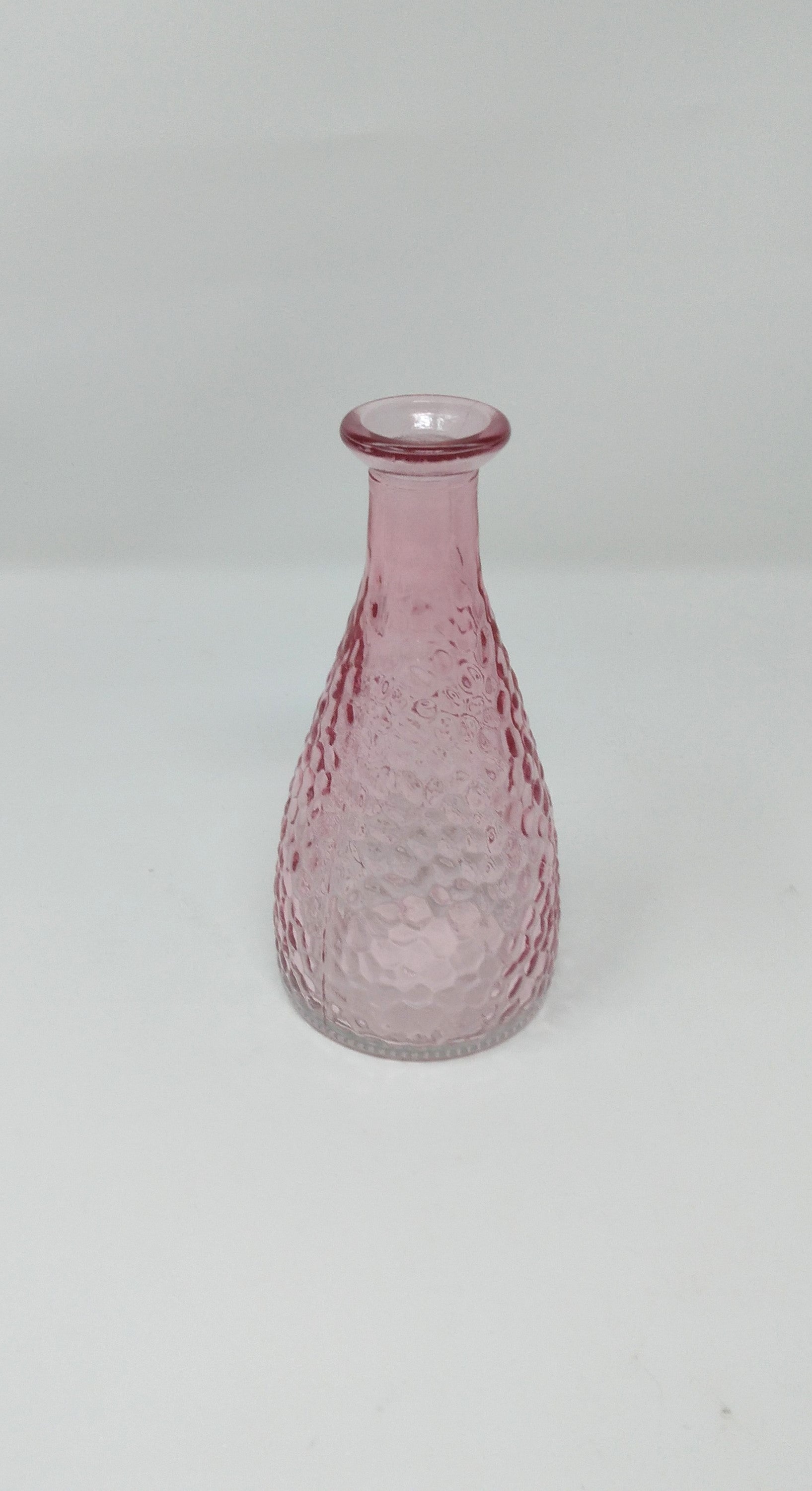 This glass vase features a decorative design and is available in a range of unique colors. It is a beautiful addition to your home's aesthetics. The decorative bottle also comes with a stopper.